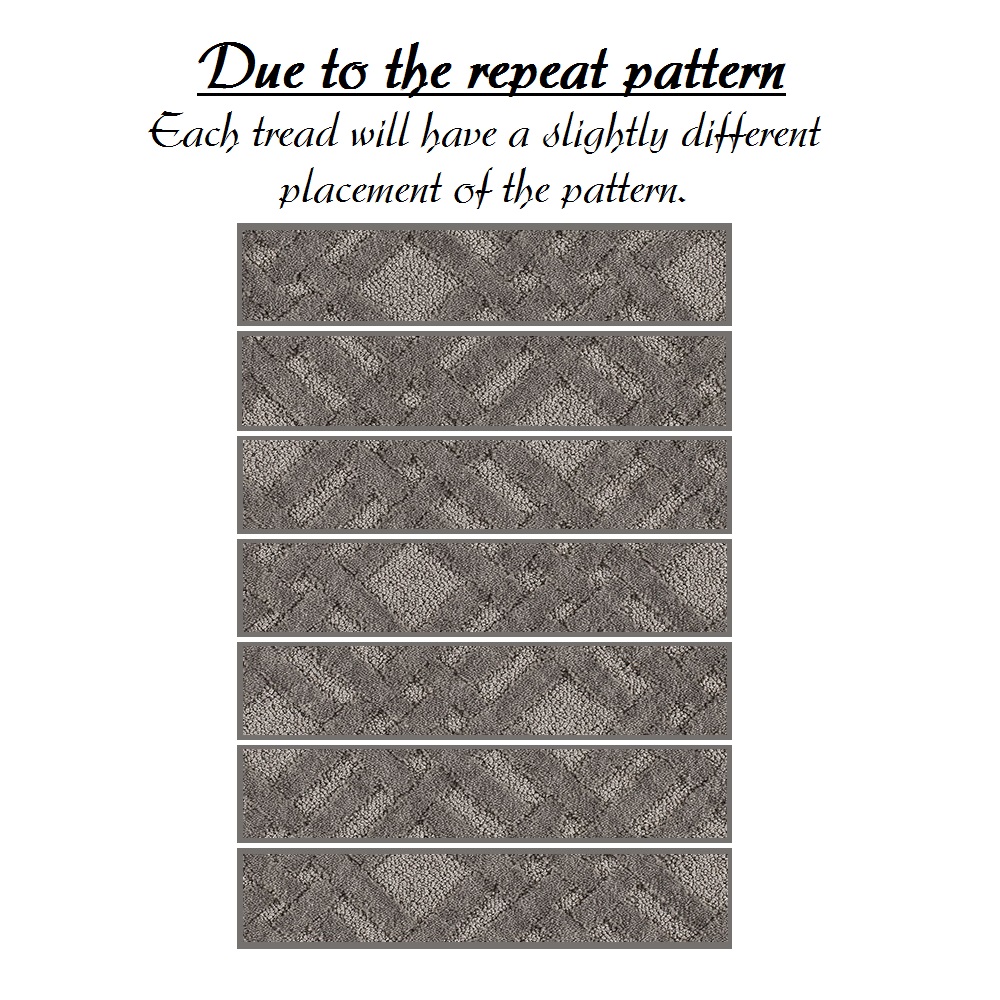 - Due to the repeat pattern Each tread will have a slightly different placement of the pattern.
