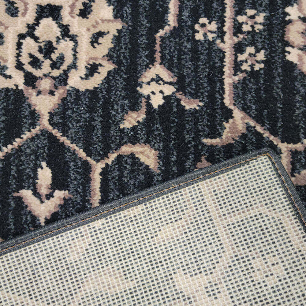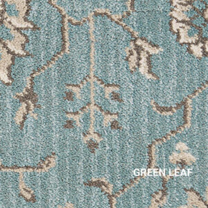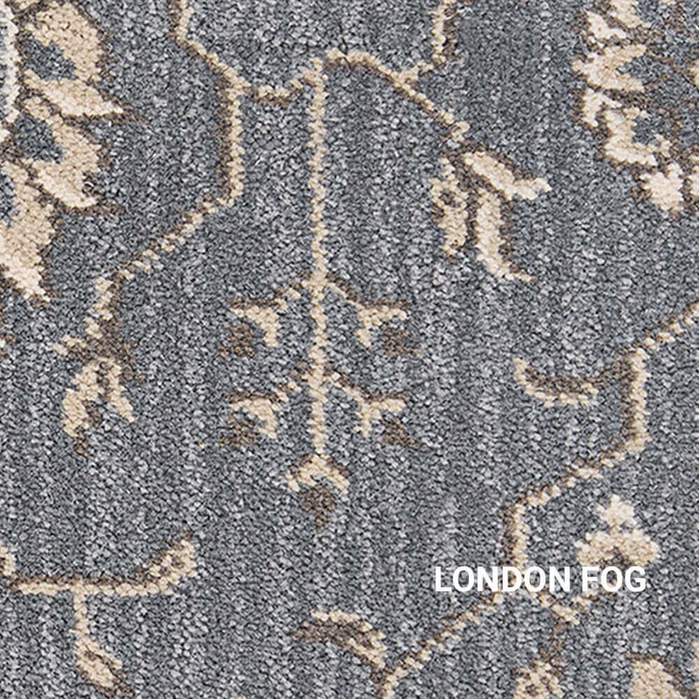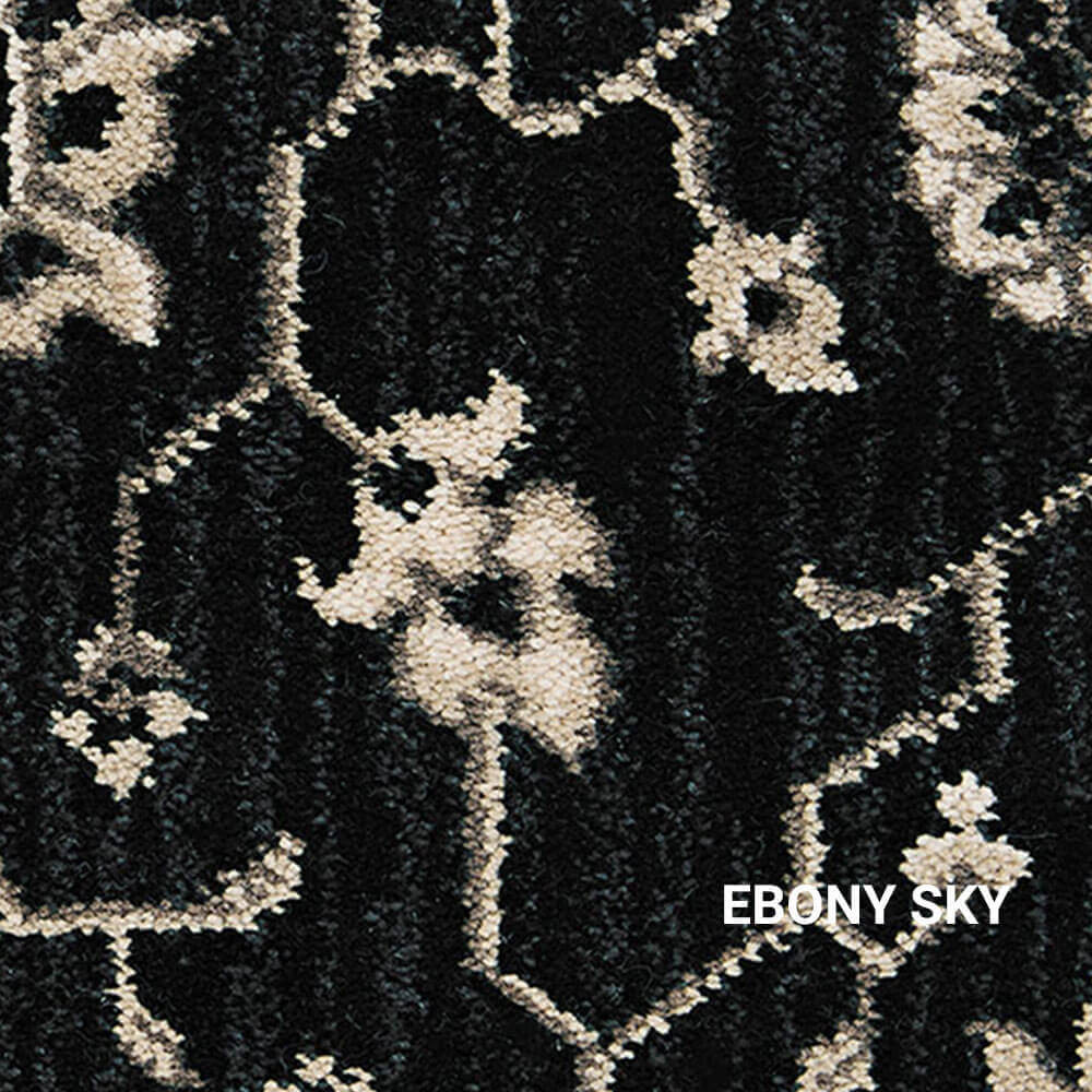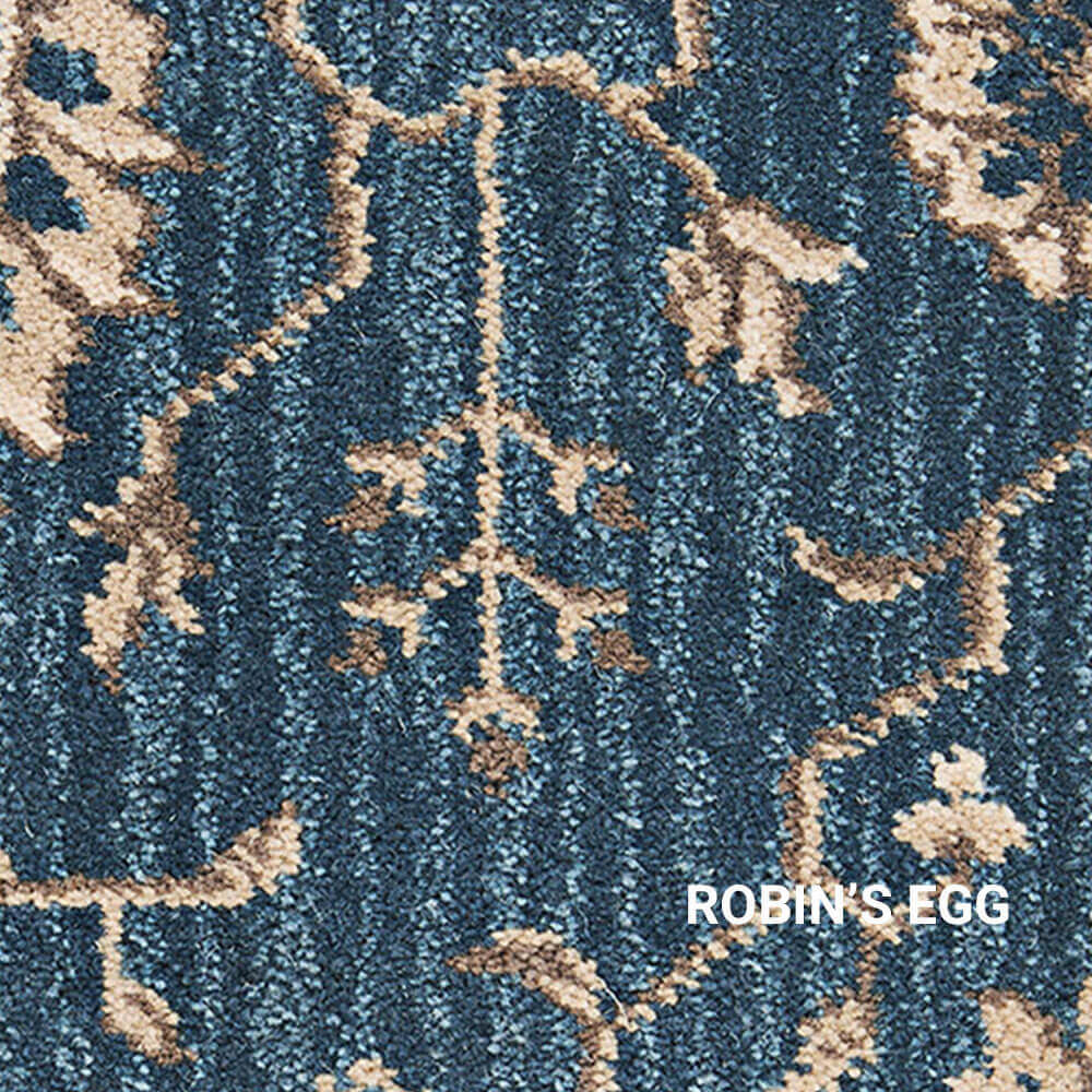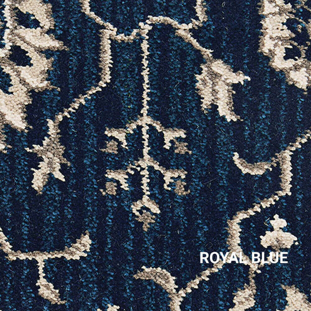 Keshan offers a full-scaled, modern-traditional Persian design that is embellished against a subtle stria background. Possessing a commercial grade surface pile of 80% wool and 20% nylon this high quality residential carpet can be installed in a number of different types of decorating schemes. Stocked in a 13’2” width, this 9-row Axminster cut-pile carpet is available in five modern base colors including Ebony Sky, Green Leaf, London Fog, Robin’s Egg and Royal Blue. Each color was carefully curated to create a handsome contrast against its updated Persian design. The uniqueness of Keshan’s enlarged design is its ability to provide smaller settings with the appearance as if they never end, while its color palette can provide a room with a warm and cozy feeling. It’s this kind of versatility that will allow Royalax II® Keshan to adapt to any room in your home.