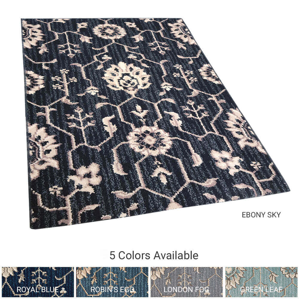 Coral Gables Floral Pattern Indoor Area Rug Collection | Multiple Colors | Customize Your Size