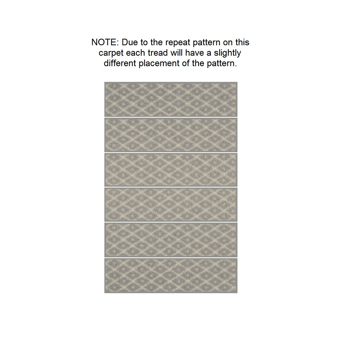 - Due to the repeat pattern, each tread will have a slightly different placement of the pattern.